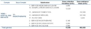 Bilan dosimétrique par compte, sous-compte et subdivision